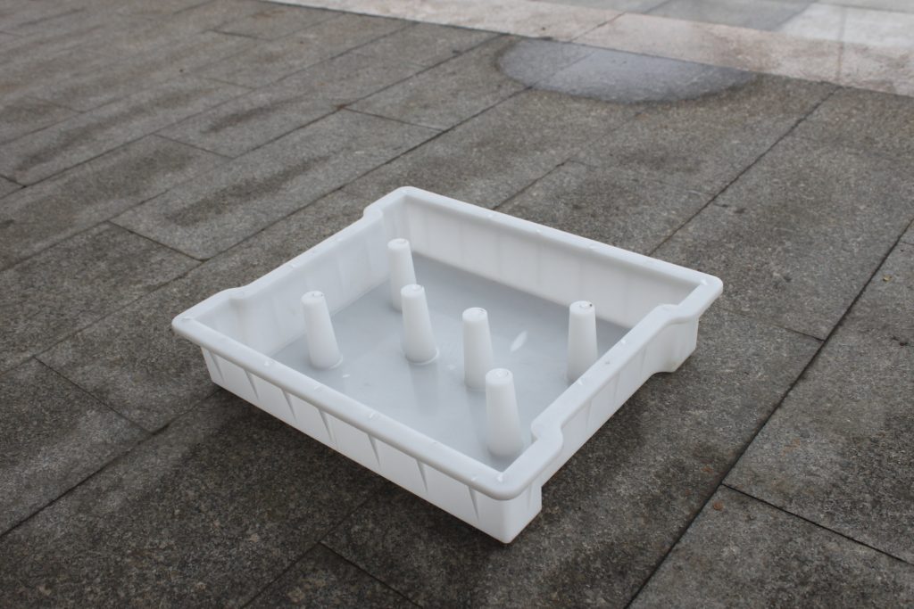 此款邊溝蓋板塑料模具采用塑料聚丙烯注塑加工而成,二端以缺口設(shè)計,方便后期對于邊溝部分區(qū)域是否堵塞情況。而在蓋板塑料模具的內(nèi)部共設(shè)置了六個塑料堵頭,實際上就是水泥蓋板成品上的六個下水孔。