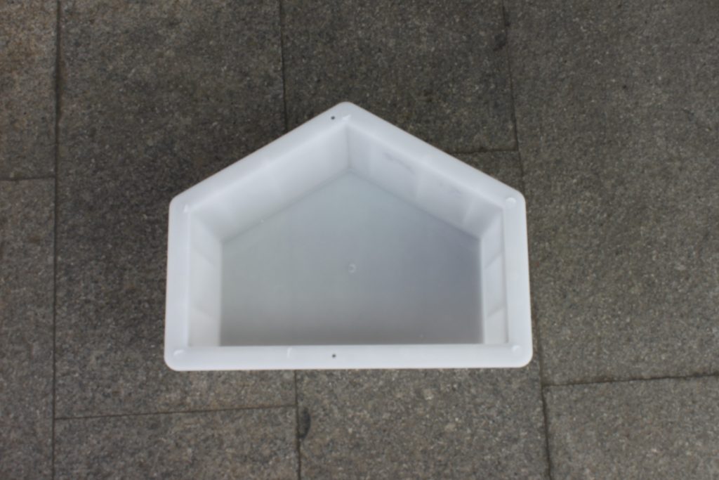 這是在眾多水泥制品模具中應(yīng)用范圍相對(duì)較小的五角護(hù)坡磚塑料模具,主要采用了PP聚丙烯樹脂材質(zhì),經(jīng)過注塑機(jī)熱熔成型,為增強(qiáng)實(shí)際水泥澆筑施工使用,在護(hù)坡磚塑料模具外圍均采用了加強(qiáng)筋設(shè)計(jì),防止水泥混凝土注入過量導(dǎo)致模具變形,對(duì)于保障長期重復(fù)使用極為關(guān)鍵。