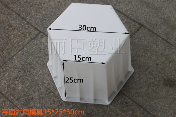 根據(jù)其圖片及尺寸的展示,這個水泥六角磚模具的尺寸比較另類,其標準高度達到了25CM,相比常規(guī)規(guī)格的水泥六角磚模具高度著實高了2倍以上,可見所制水泥六角磚實物也是非常厚實的。