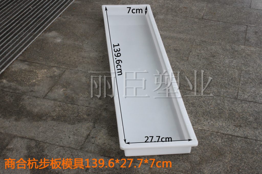 這2個尺寸的高鐵水泥步板塑料模具均采用中石化所產(chǎn)聚丙烯塑料加工而來,長度長達將近1.4米,主要用于鋪設吊籃的水泥步板預制,主要項目則用于商合杭高鐵建設。