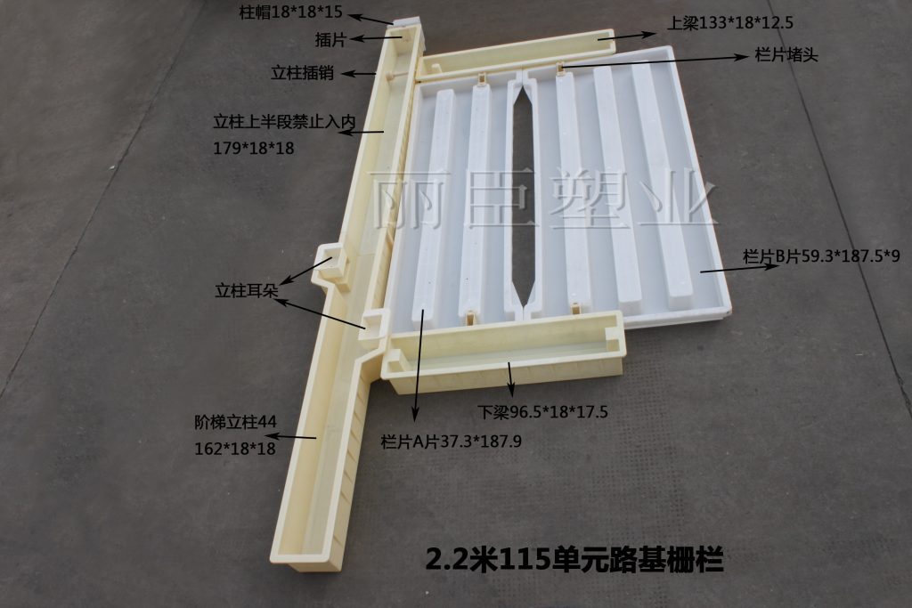 針對(duì)不同施工要求,除此2.2米115單元的路基柵欄塑料模具之外,麗臣秉借多年客戶需求積累,也相應(yīng)提供2.2米159單元、2.2米300單元、1.8米159單元、1.8米3單元、1.8米115單元等一系列塑料路基柵欄模具,歡迎垂詢。