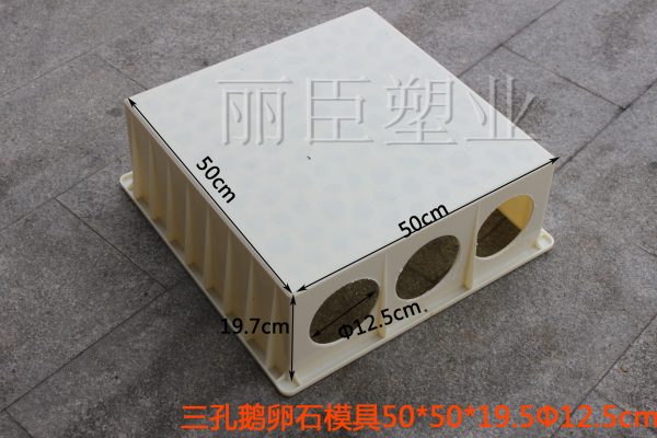 其中泄水管線纜槽模具整體外觀為正方形結(jié)構(gòu),長款分別是50厘米,高度為19.5厘米,六個(gè)貫通圓孔單一直徑為12.5厘米,具體細(xì)節(jié)指標(biāo)及樣式請(qǐng)參考下圖。