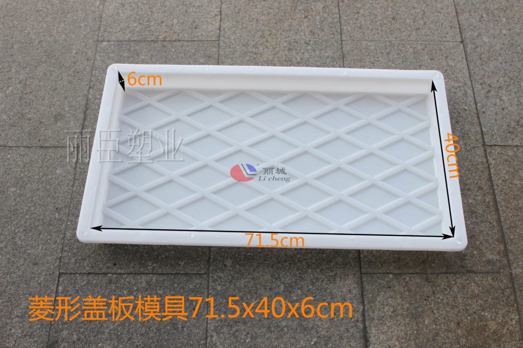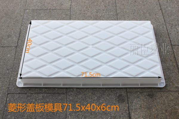 這款PP聚丙烯塑料模具的在外觀花紋上主要采用菱形外觀為主,但這款菱形蓋板模具與麗臣往前的菱形蓋板塑模有所不同,菱形花紋所下凹的較深,其主要對后期澆筑成型的水泥制品紋路更清晰,也增強了安全檢查人員在檢查線路過程中的安全。