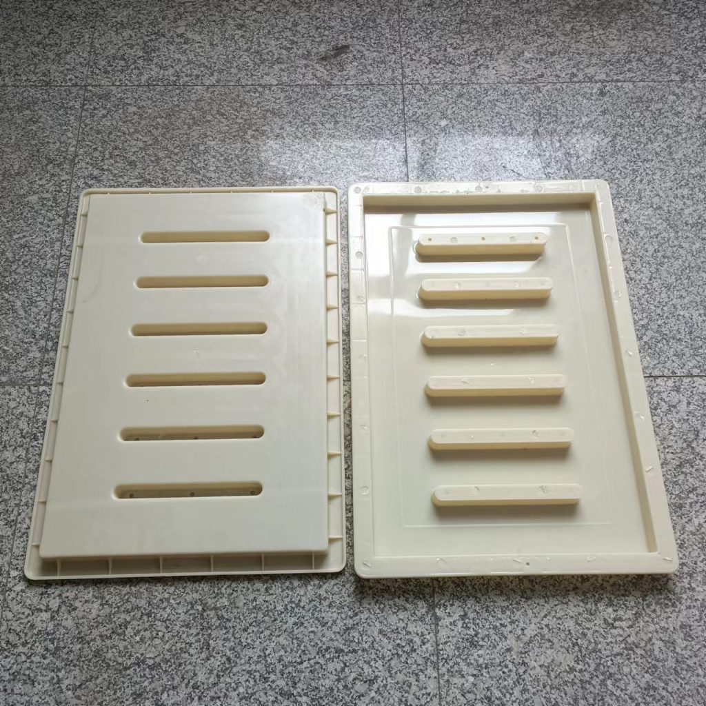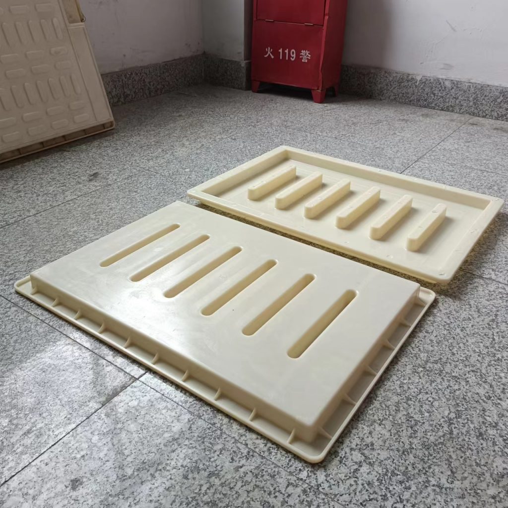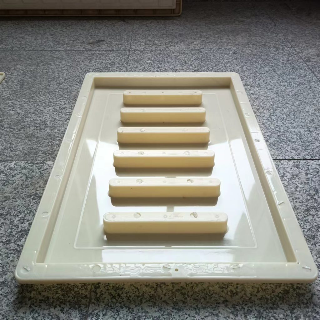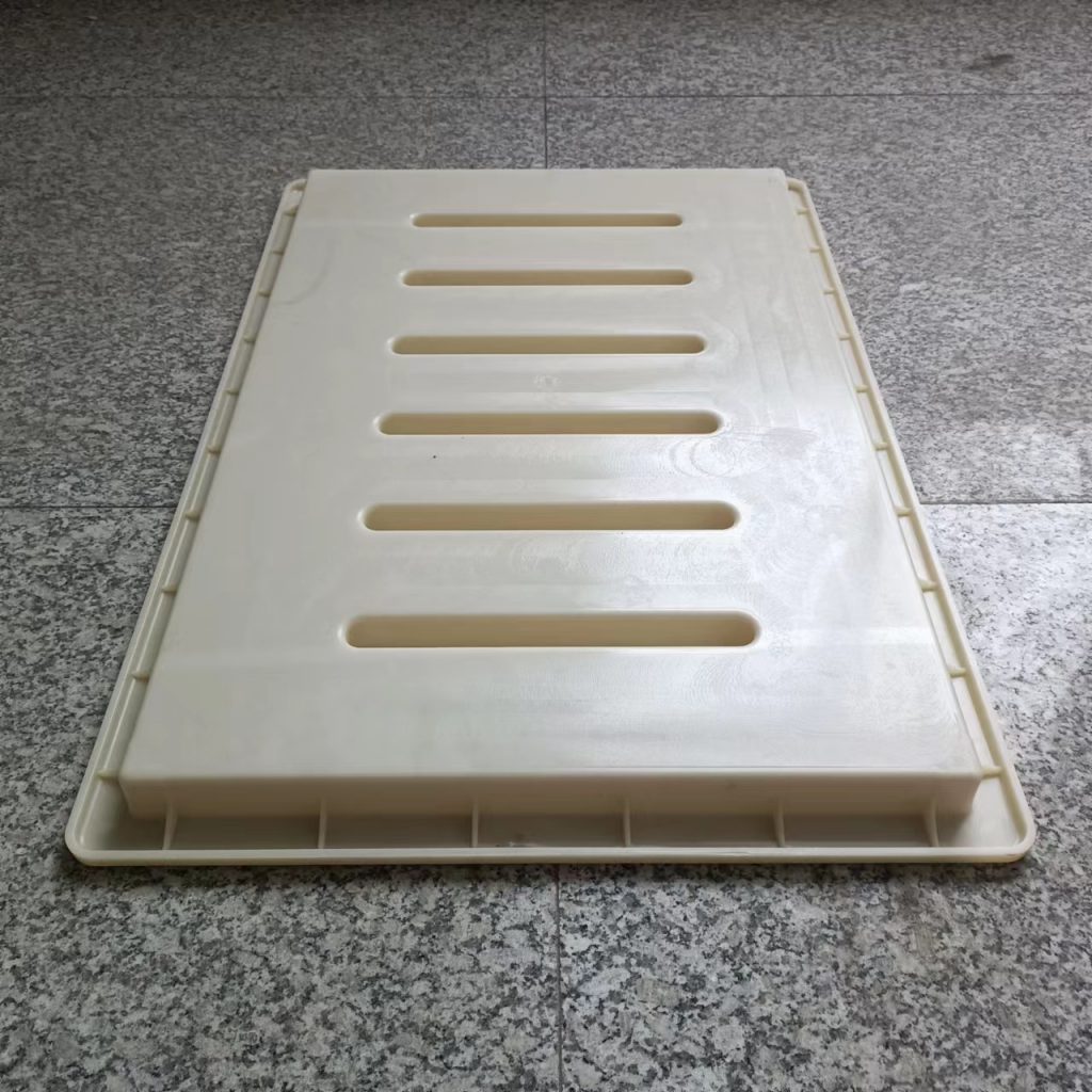 這款塑料雨水蓖模具厚度只有3cm,長寬尺寸為60cm*40cm,他主要用于下水、流水蓋板活性混凝土預(yù)制(RPC)預(yù)制,他的厚度較薄,與一般材質(zhì)的雨水蓋模具不同,他采用的材質(zhì)是ABS材質(zhì),這種材質(zhì)質(zhì)地比PP材質(zhì)硬,強(qiáng)度大,使用次數(shù)多,這種模具主要預(yù)制成型雨水蓋板,普通用于市政道路路面排水使用。他一共有六個排水孔,排水效果很好。水流效果比較好