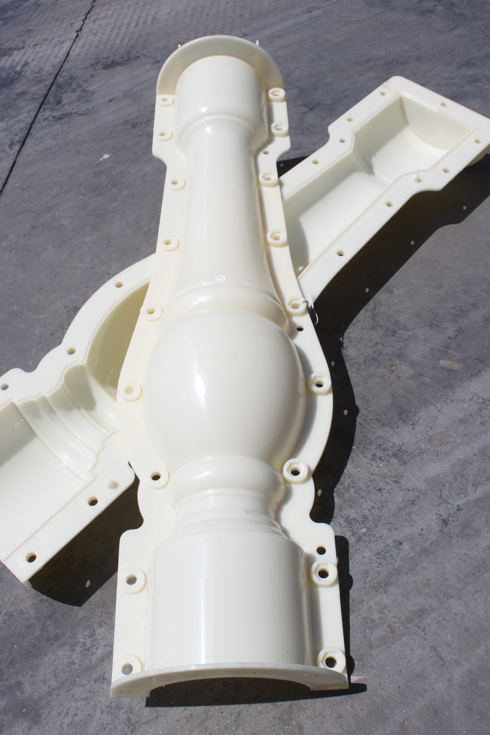 水泥現(xiàn)澆羅馬柱模具采用工程ABS塑料材質(zhì),以注塑工藝一體成型。羅馬柱模具主要設(shè)計以傳統(tǒng)花瓶形狀設(shè)計,主要由2個組合部分,在水泥現(xiàn)澆羅馬柱成品生產(chǎn)制造過程中,使用鋼制螺絲螺帽相扣組合。