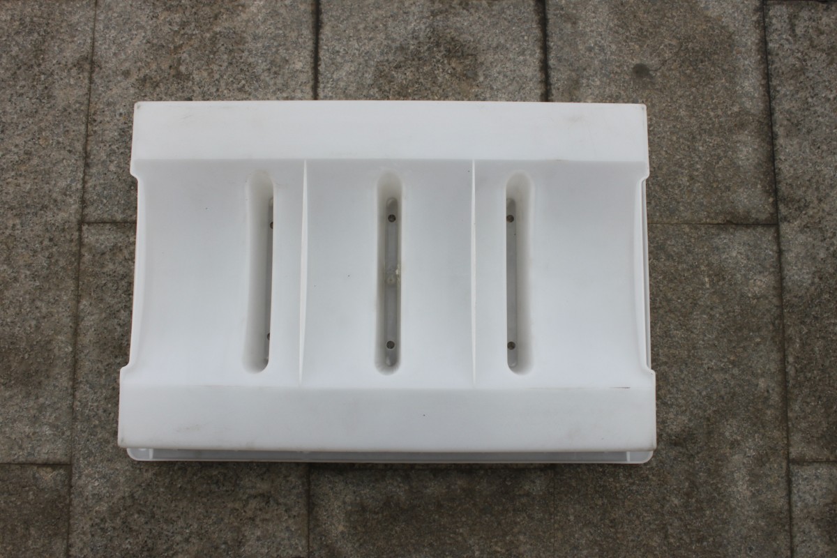 塑料排水蓋板模具采用PP聚丙烯材質注塑加工工藝,主要設計結構以三孔流水結構,排水蓋板成品圓弧內凹設計,更加方便溝渠等泄水排水。在排水蓋板模具的周邊采用了加強筋設計,使得蓋板模具在水泥產品脫模過程中更加牢固及穩(wěn)定。