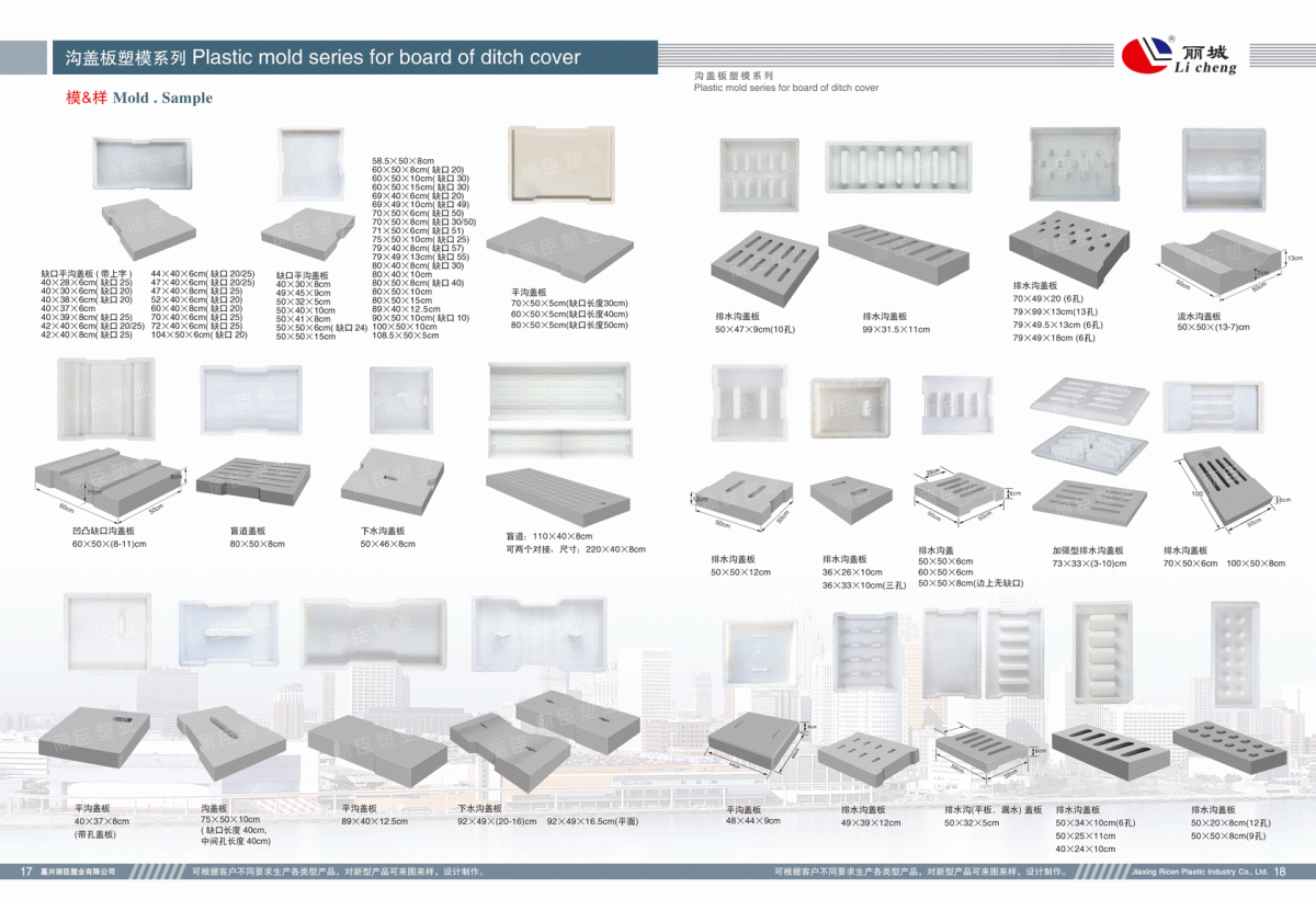 由于本公司各規(guī)格尺寸已有塑料模具數(shù)量已達(dá)3000種之多,所以如果您沒有在網(wǎng)站中找到合適的產(chǎn)品,可以查看麗臣塑業(yè)的電子畫冊,主要分為高鐵和市政專用!如果您希望以最短的時間內(nèi)找到您想要的產(chǎn)品,請撥打麗臣熱線:0573-82606007