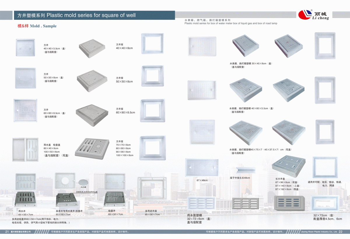20-21:方井檢查井蓋系列 ? ? ? ? ? ? ? ? ? ? ? ? ? ? ? ? ? ? ? ? ? ? ? ? ? ? ? ? ? ? ? ? ? ? ? ? ? ? ? ? ?22:水表箱、路燈箱、燃?xì)庀?a href="http://m.seekworld.cn/">塑料模具系列