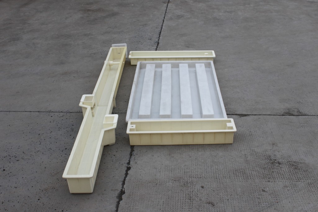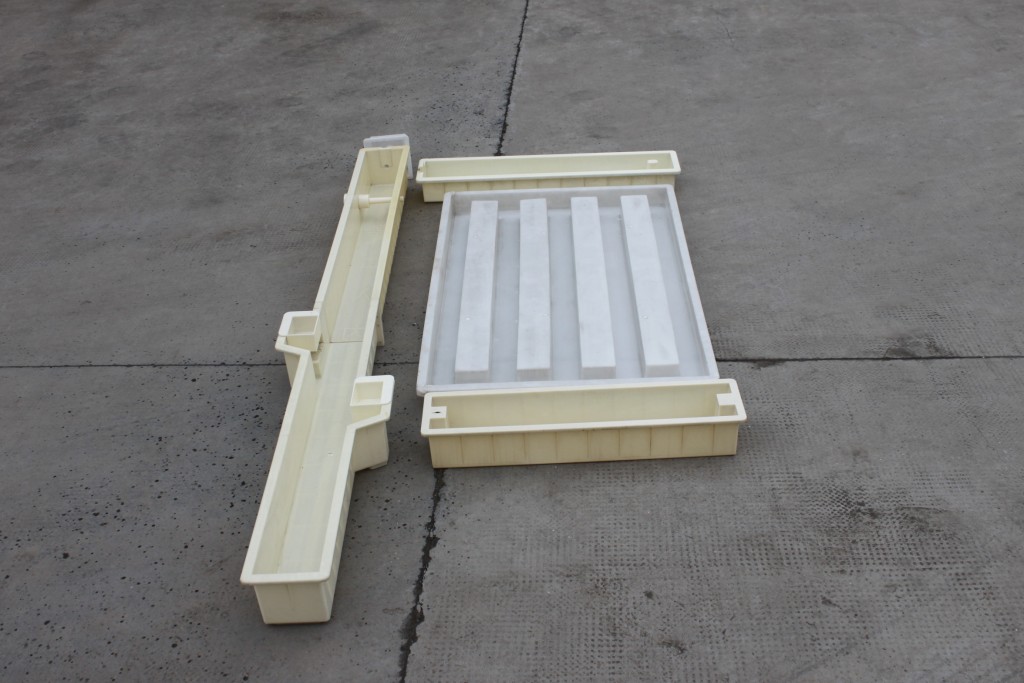 欄片模具則采用PP聚丙烯材質(zhì),更好的模具韌性對(duì)施工面積較大的水泥制品更為有利。水泥護(hù)欄欄片模具的尺寸為149.5×96.5x9cm,采用5幅式欄桿設(shè)計(jì)。